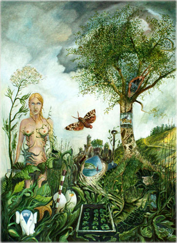 Die schöne Gärtnerin - Öl auf Leinwand - Joachim Dultz
